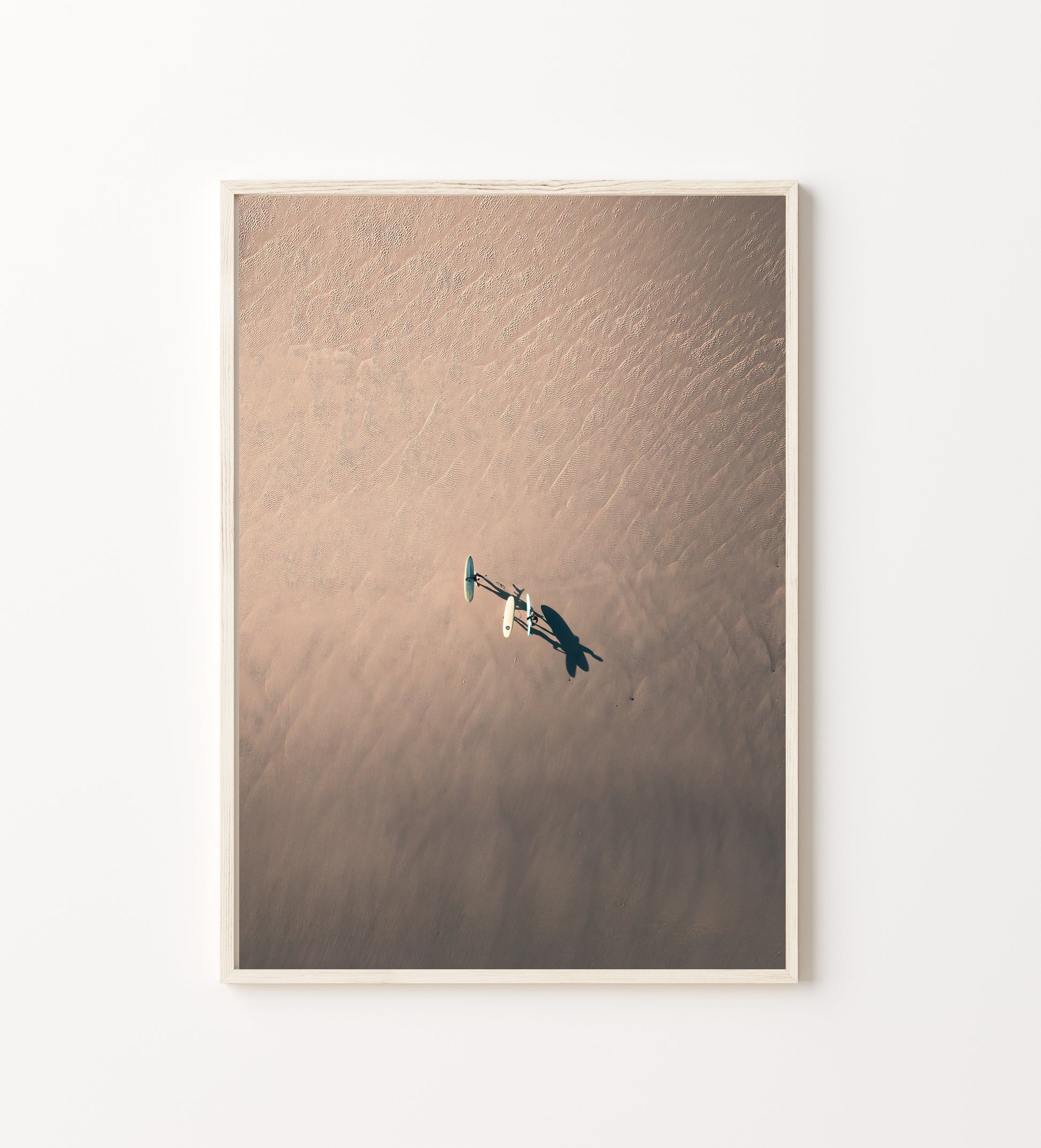"Through my drone's lens over Byron Bay, three surfers embark on their oceanic adventure. As they move in harmony towards the beckoning waves, this aerial capture highlights their shared anticipation and passion. Set against the vast backdrop of the shoreline, it's a premium portrayal of the bond between surfers and the magnetic pull of the sea."