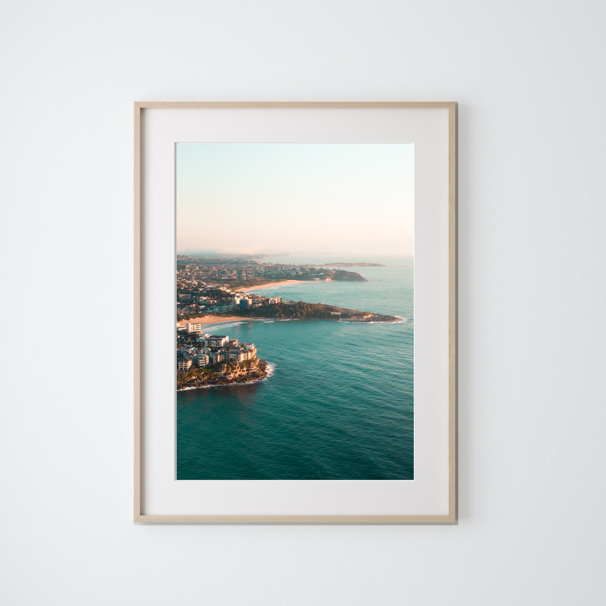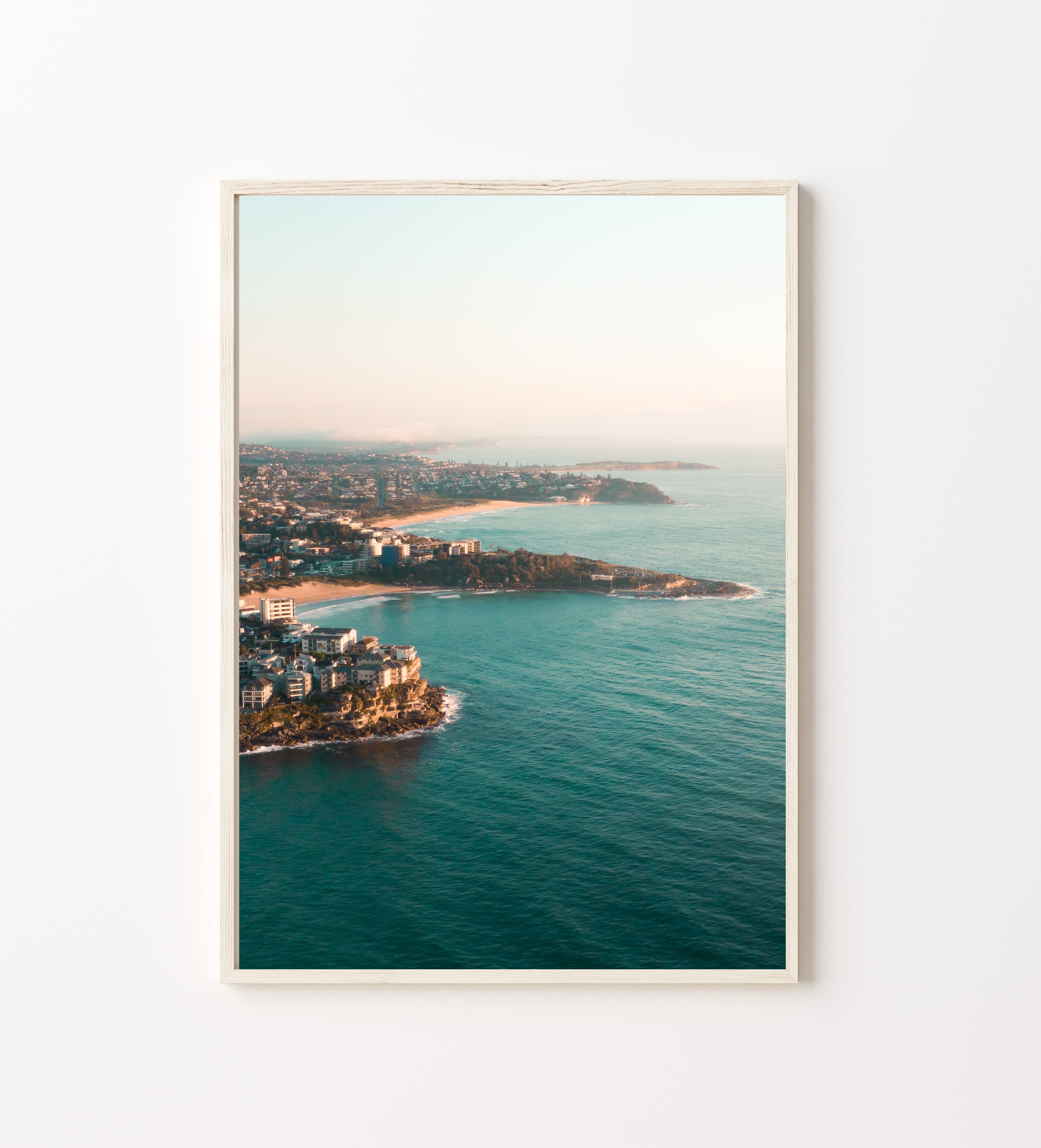 "Captured through a drone's lens, the Northern Beaches coastline from Queenscliff to Mona Vale is vividly showcased. This aerial photography reveals the rugged beauty of majestic cliffs standing sentinel. Their rocky facades, juxtaposed against the ocean's deep blue, offer a breathtaking panorama, epitomizing nature's sculpted masterpiece in premium detail."