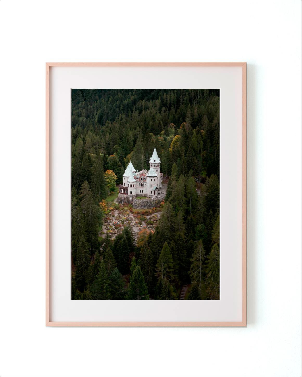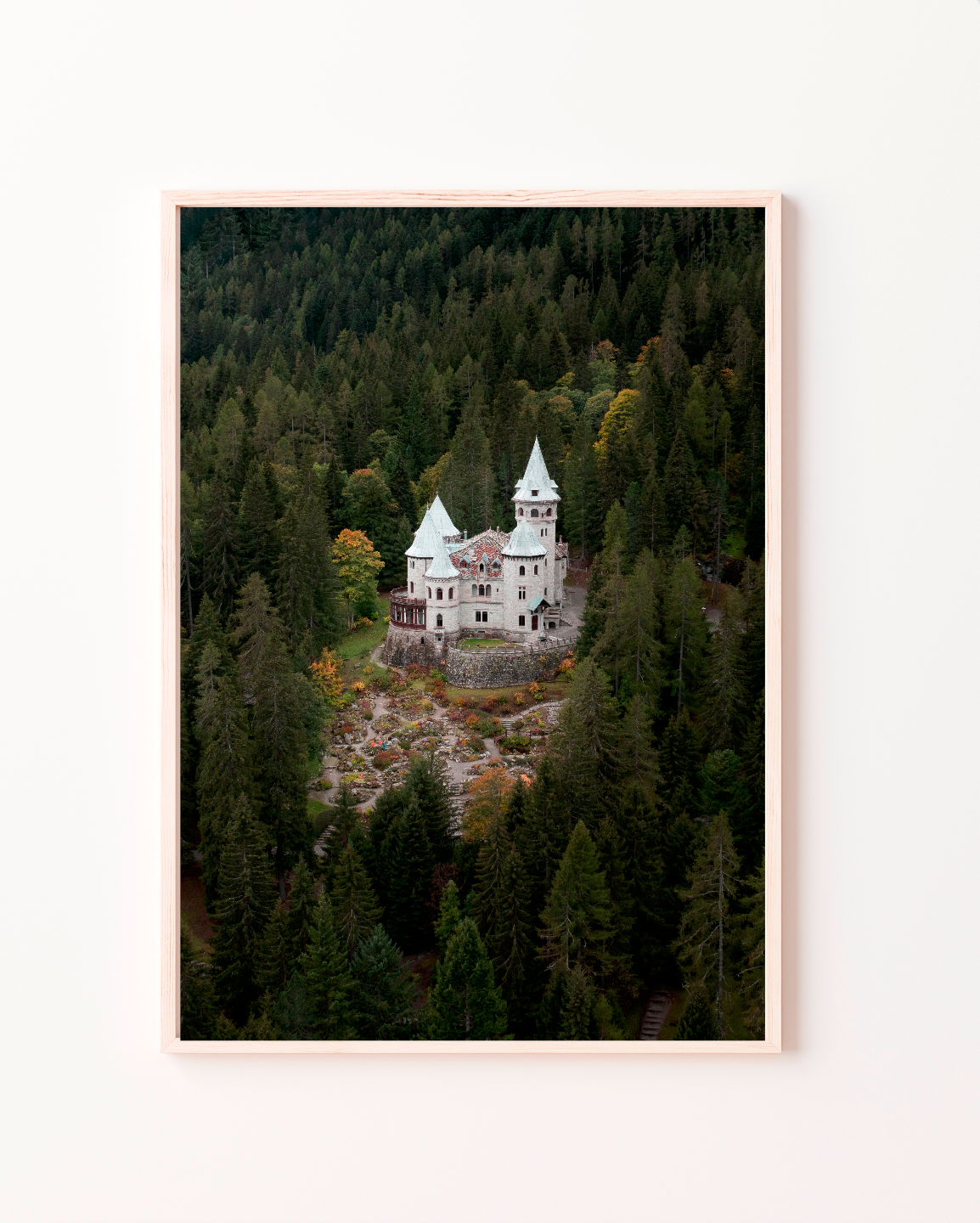 "Step into the enchanting allure of Savoia Castle, nestled amidst the dense pine forest in Gressoney. This captivating shot captures the castle's elegant architecture, framed by the rich greenery of the surrounding alpine woods. A hidden gem in the heart of the Valle d'Aosta, this premium print celebrates the harmonious blend of regal history and untamed nature, offering a timeless perspective of one of the region's most iconic landmarks."