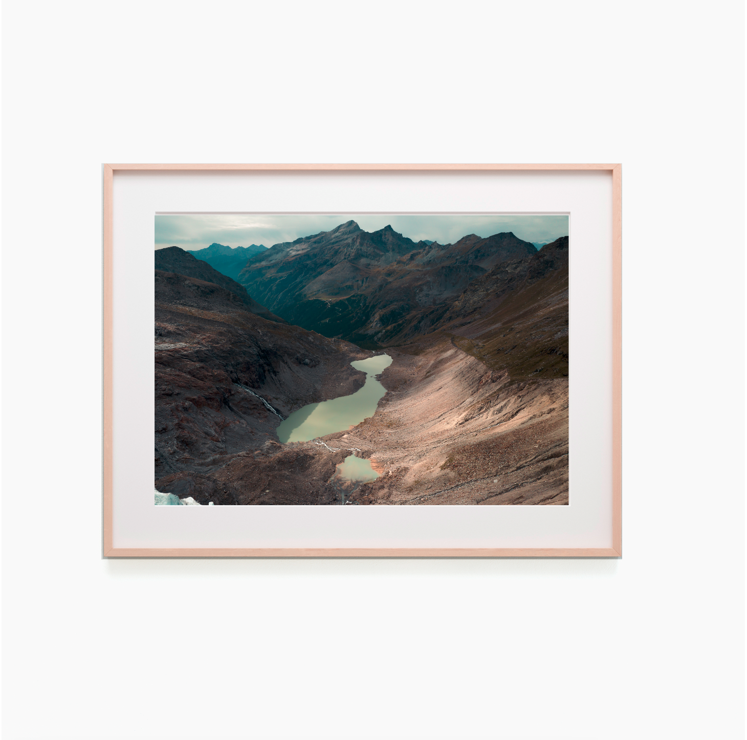 "Immerse yourself in the pristine beauty of the Sorgente del Lys in Gressoney with this captivating shot, looking down at the expansive valley below. The source of the Lys River glistens amidst a rugged alpine setting, framed by majestic peaks and verdant slopes. This premium print captures the essence of untouched wilderness and the grandeur of the Valle d'Aosta, offering a breathtaking perspective that celebrates the harmony between water, mountains, and the sweeping vistas of the valley."