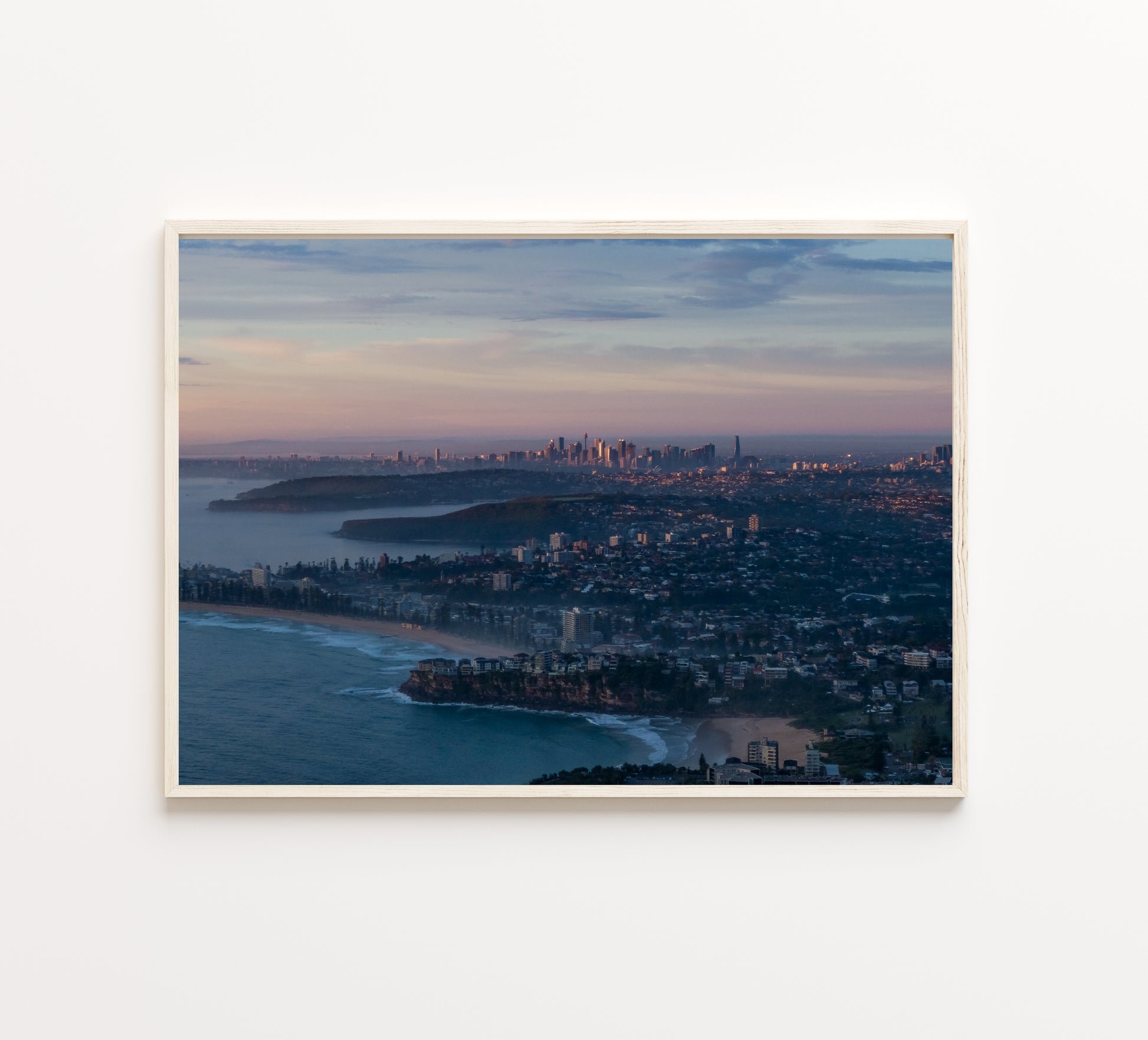 "Captured through the lens of aerial drone photography, the sweeping coastline of the Northern Beaches unfolds in breathtaking detail. Tracing a scenic path from Manly to the iconic Sydney Harbour, this aerial capture highlights the unique coastal formation, with its intricate bays and headlands. Experience a premium panoramic view of Sydney's maritime beauty, showcasing nature's artistry from above."